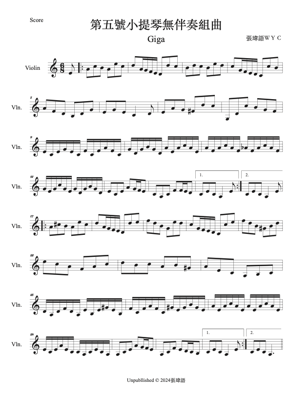 六首小提琴無伴奏組曲 – 2024